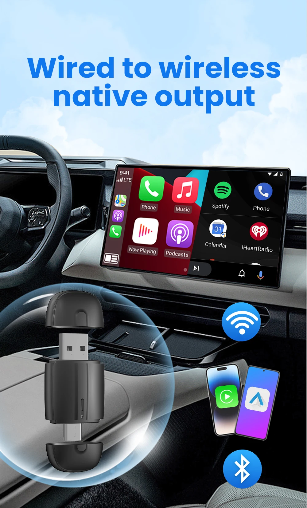 Compatibilidad universal con el adaptador inalámbrico CarPlay Android Auto El adaptador inalámbrico CarPlay Android Auto está diseñado para una amplia compatibilidad con numerosas marcas de coches, lo que lo convierte en una opción versátil para muchos vehículos populares. Funciona a la perfección con los modelos Chevrolet, Citroën, Buick, Cadillac, Chery y VW que ya tienen CarPlay con cable instalado de fábrica. La instalación solo tarda unos segundos: simplemente conecta el adaptador inalámbrico CarPlay Android Auto al puerto USB de tu coche, empareja tu teléfono por Bluetooth una vez y listo. Disfruta de acceso sin restricciones a la navegación, la música y las llamadas, mejorando la seguridad y el disfrute en cada viaje en 2026. Este pequeño pero potente adaptador es el dispositivo esencial para cualquier conductor moderno que busque una experiencia de conducción más limpia e inteligente.