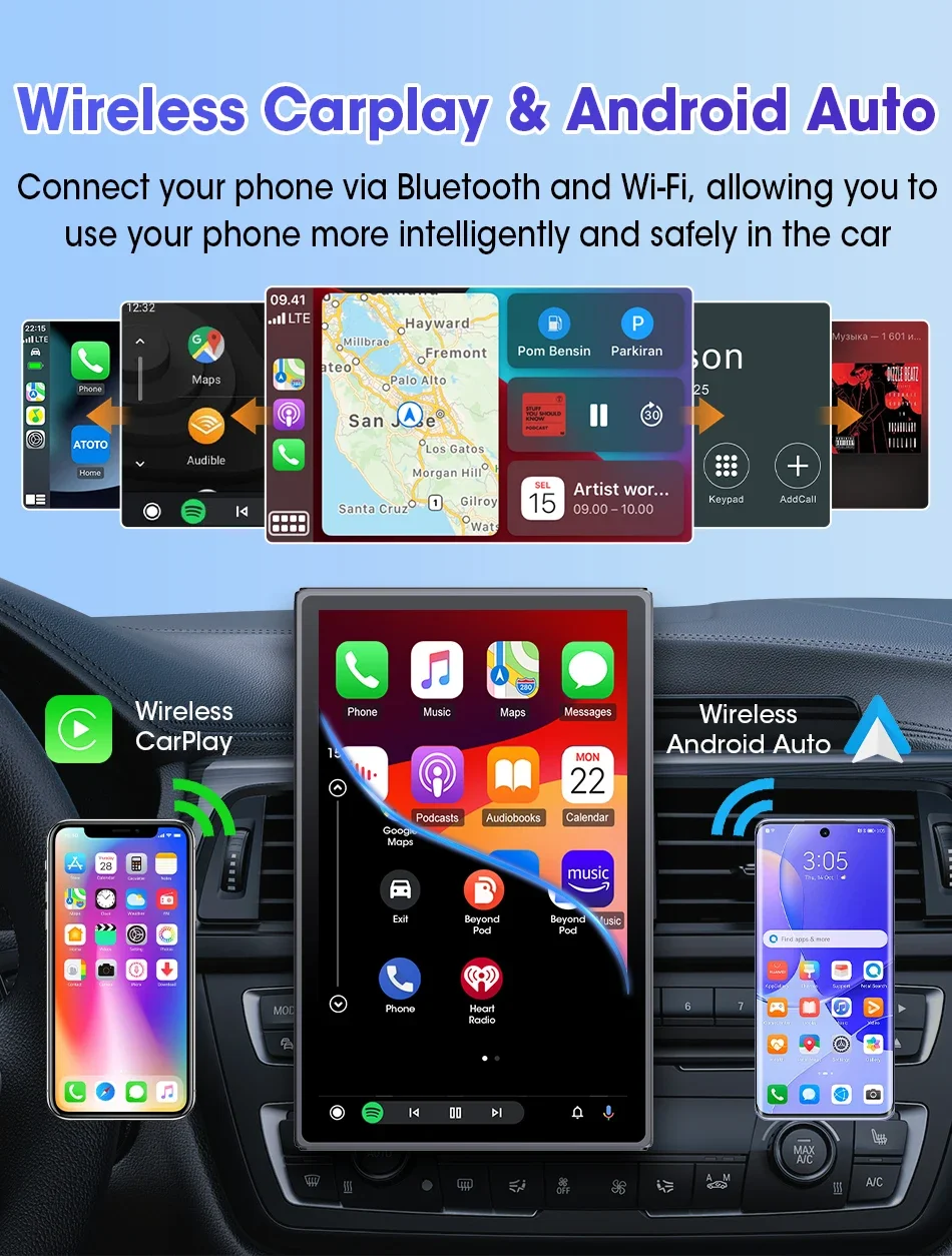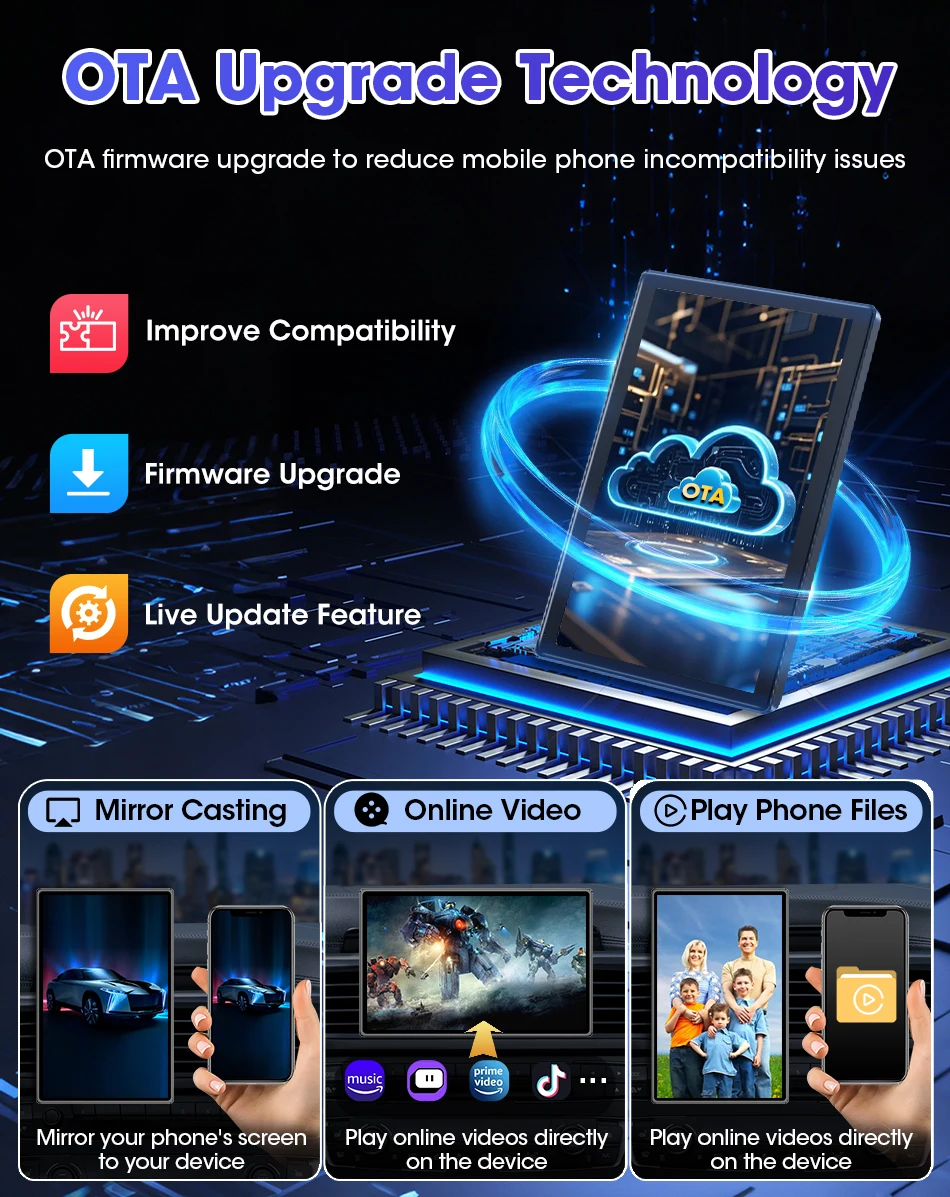 Restez connecté et conduisez en toute sécurité avec l'autoradio rétroviseur de voiture Android 13 de 9 pouces – commande vocale, entrée caméra de recul et 64 Go de stockage interne.