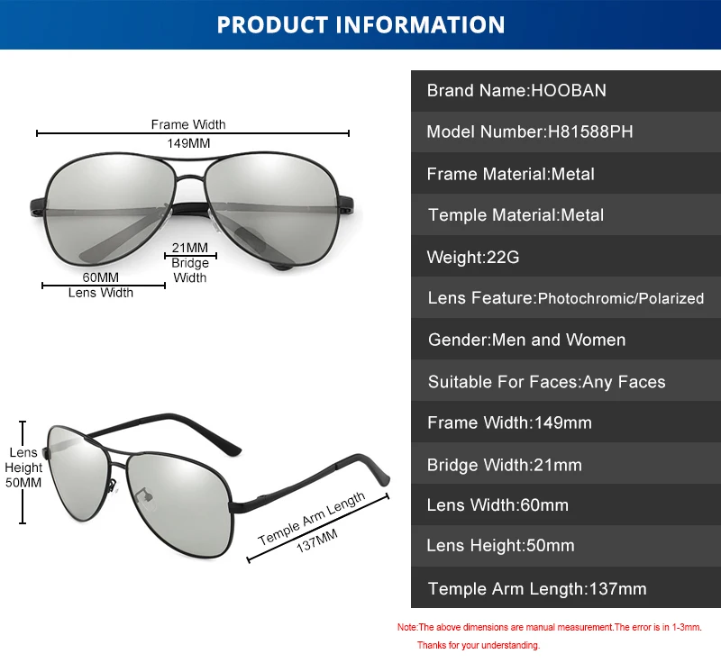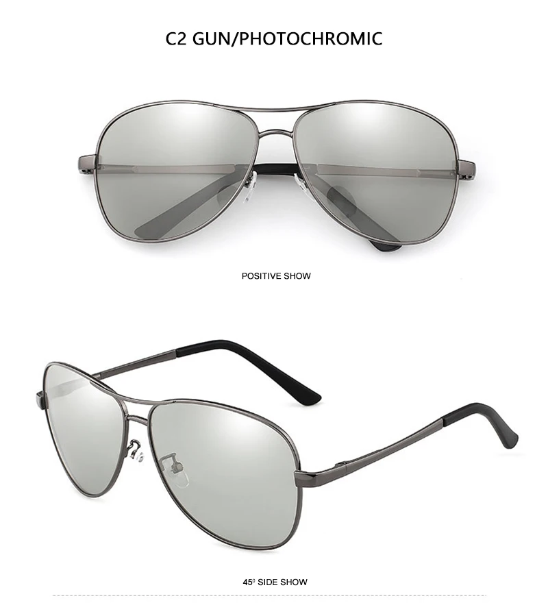 Les lunettes de soleil photochromiques polarisées s'adaptent automatiquement aux conditions de lumière changeantes, ce qui les rend idéales pour toutes les activités de plein air. Avec un style aviateur classique et caméléon, ces lunettes de soleil conviennent aussi bien aux hommes qu'aux femmes.