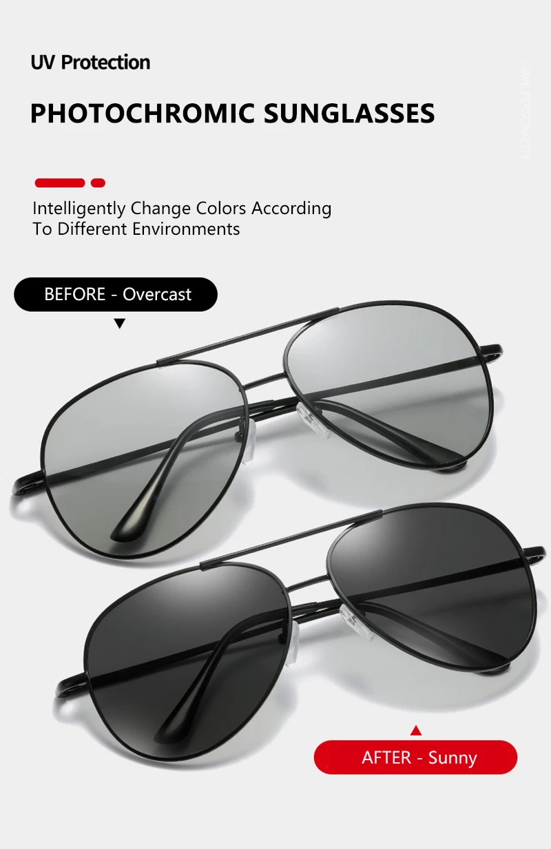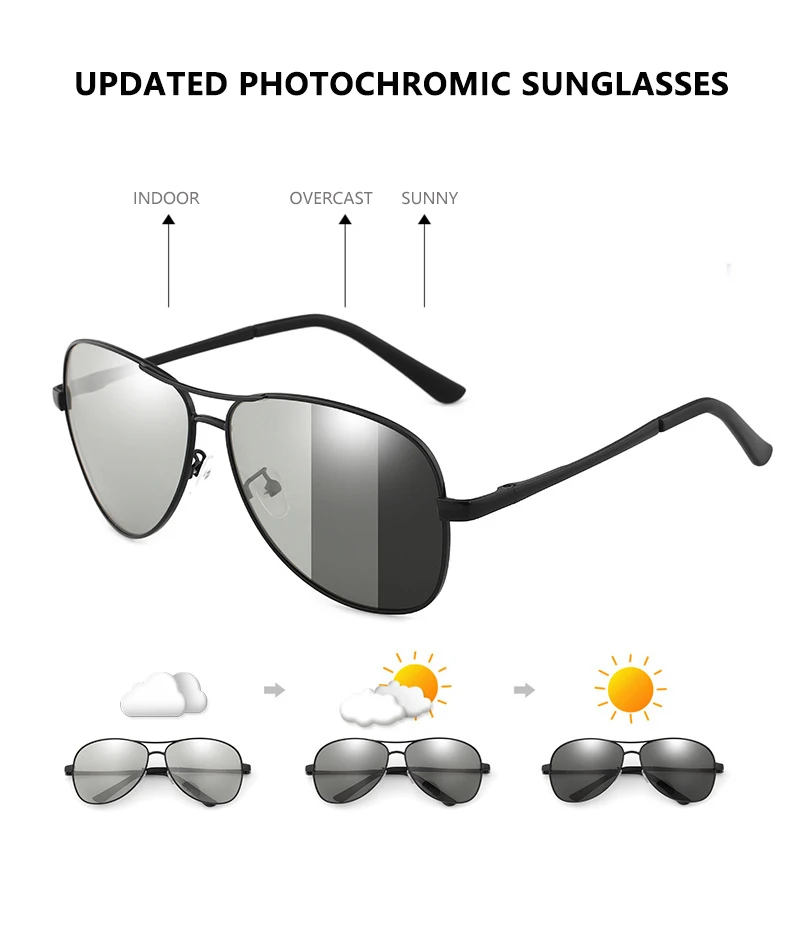 Les lunettes de soleil photochromiques polarisées avancées réduisent l'éblouissement, tandis que la technologie photochromique assombrit la lentille lorsqu'elle est exposée aux rayons UV. Les lunettes de soleil photochromiques polarisées offrent une protection UV essentielle et une clarté améliorée pour la pêche, la conduite et les loisirs en plein air en général.