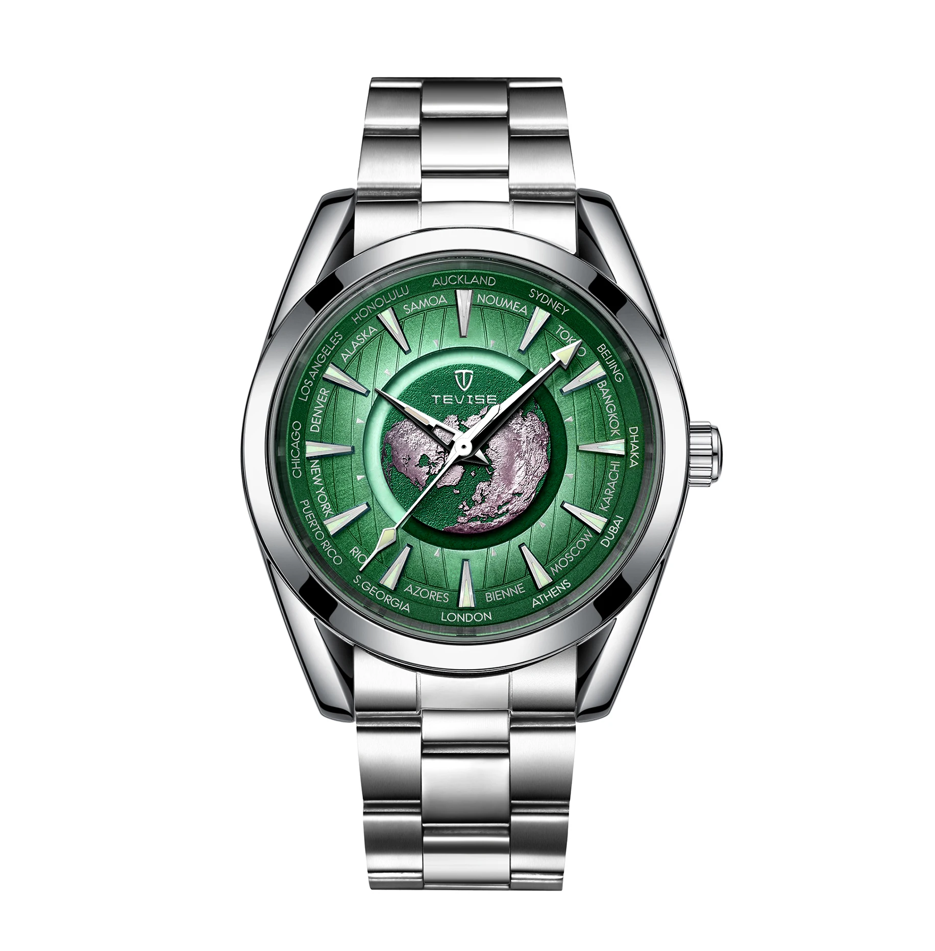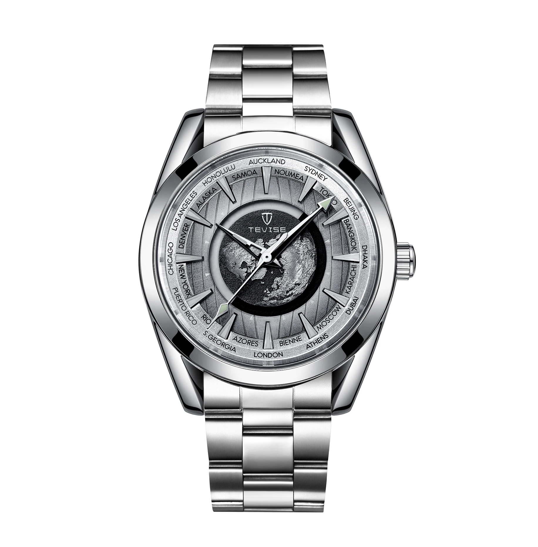 Découvrez la montre-bracelet mécanique automatique TEVISE pour hommes, dotée d'un superbe cadran en acier inoxydable avec carte du monde. Ce garde-temps tendance et étanche est le cadeau parfait pour toute occasion.