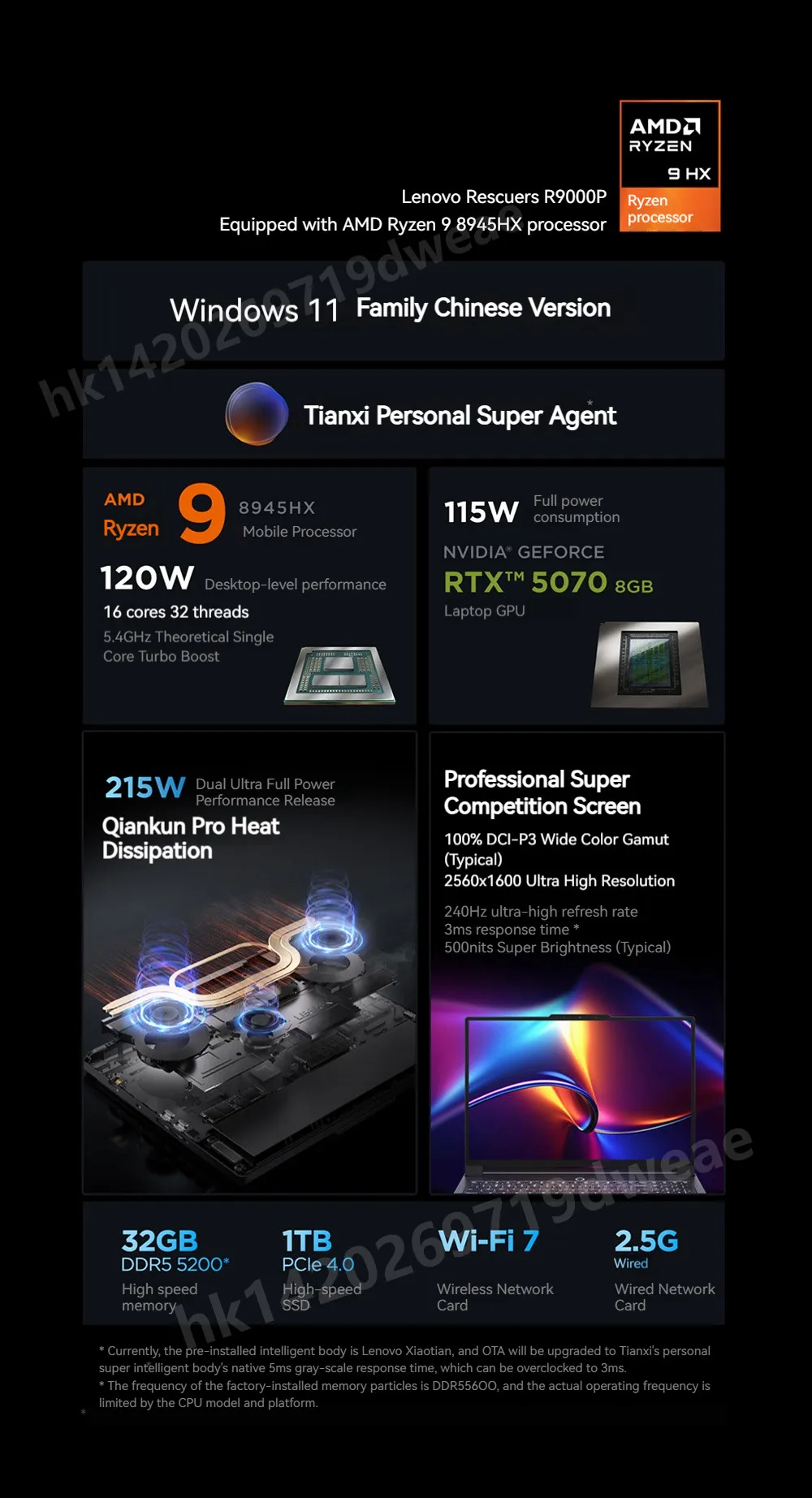 6.Customized version: The configuration containing 2T belongs to the factory customized version.We will send it to you correctly according to the actual configuration you ordered.However, please note that the label on the side of the box is still the standard label at the factory.If you purchase a factory customized version, you are deemed to have agreed to this agreement.
