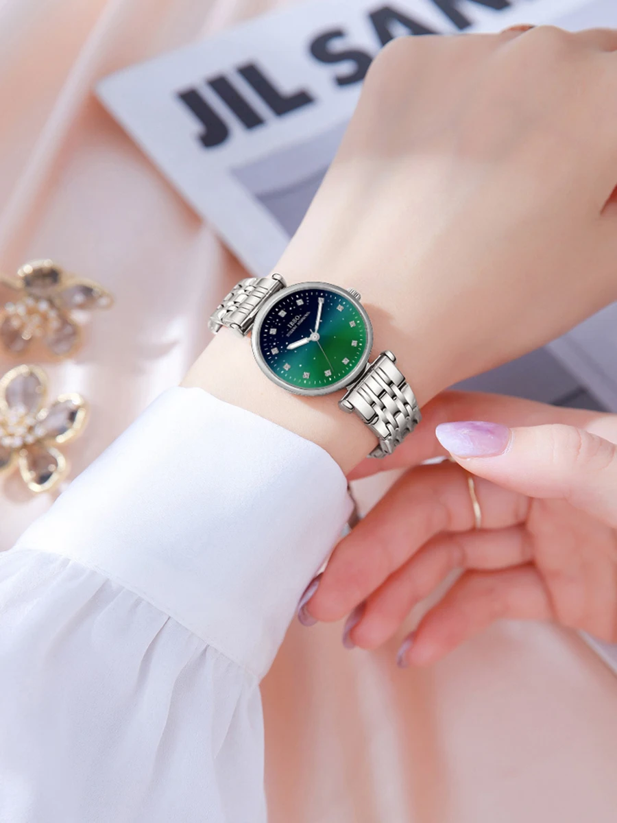 Luxury Women Watches Small Blue Leather Waterproof Fashion Golden Hand Clock Female Gifts New Top Brand Ladies Wristwatch Green