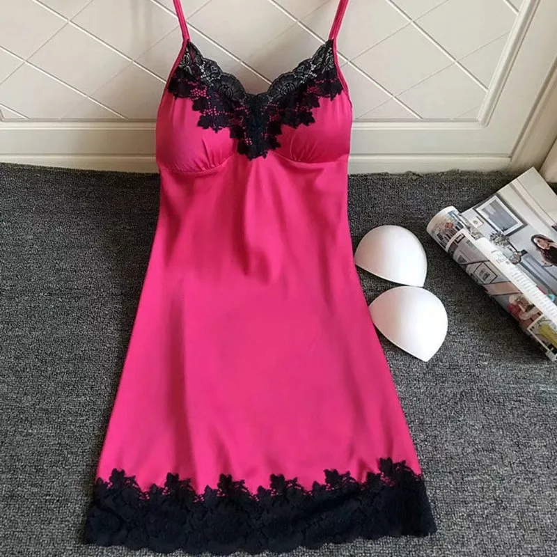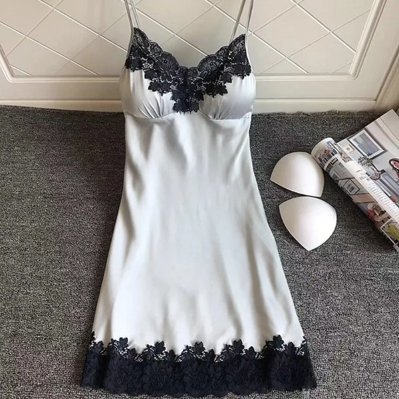 Sexy Women  Silk Robe Dress Nightdress Soft Lace Casual Nightgown Straps Sleepwear Nightdres