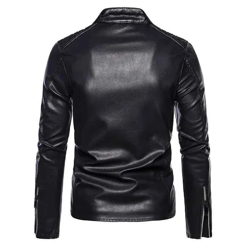 Stand Collar Jackets Fashion Casual Trend White Windproof Coat Streetwear Spring Autumn Men's Motorcycle Leather Jacket Solid