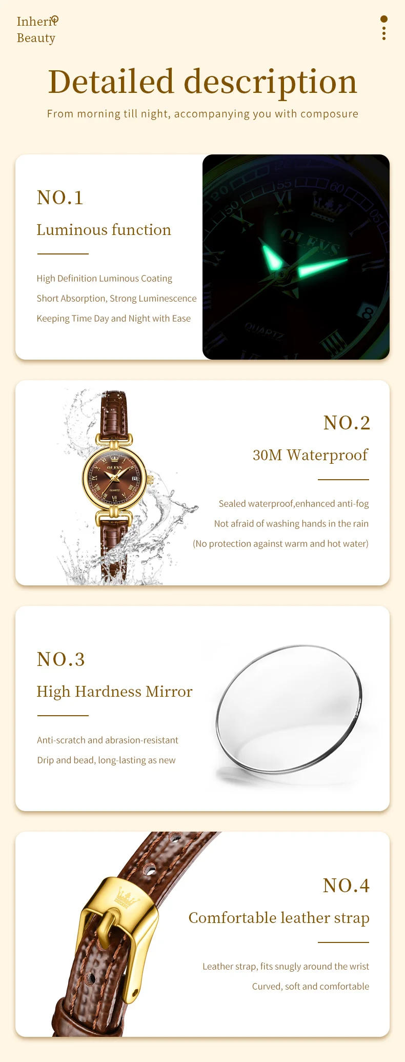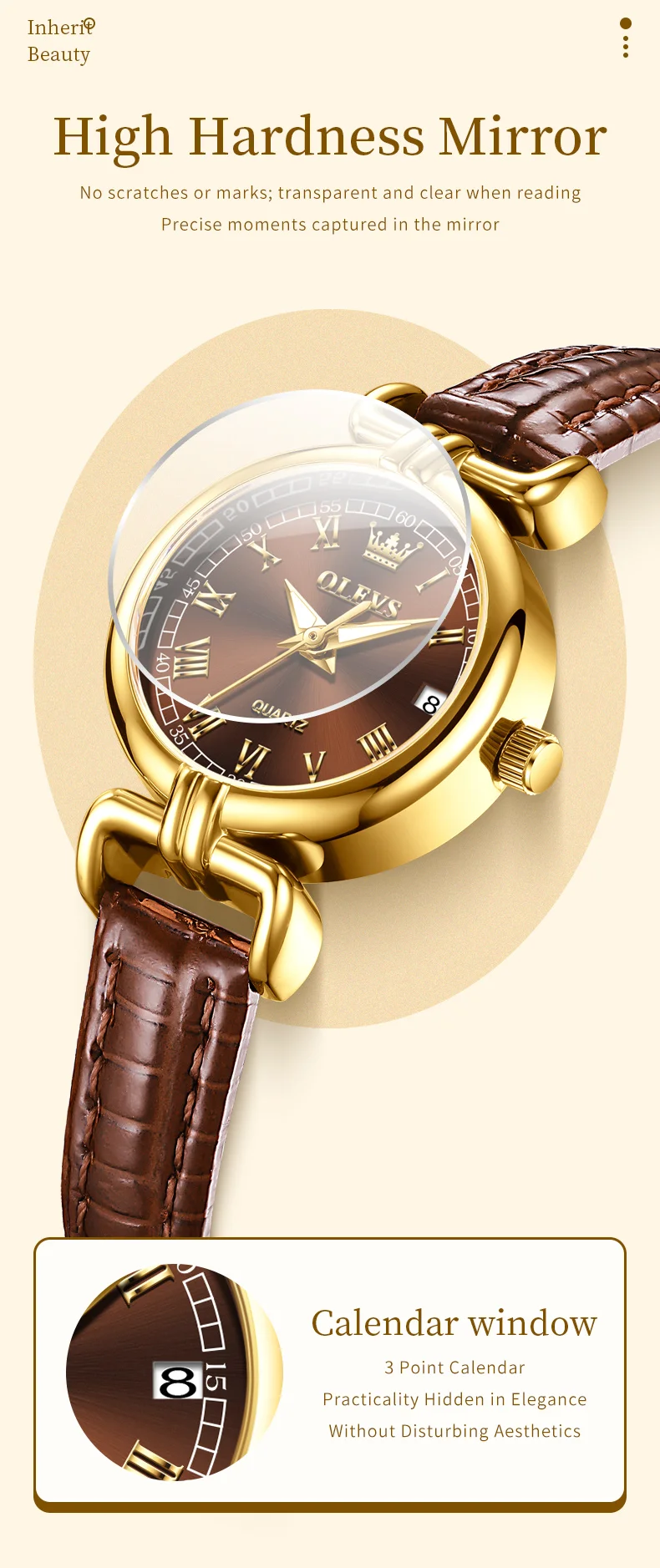 OLEVS Watches Womens Elegant Discover elegance with the OLEVS Women's Elegant Quartz Watch. Featuring a waterproof leather strap and a luminous date feature, it's the perfect gift for ladies and girls.
